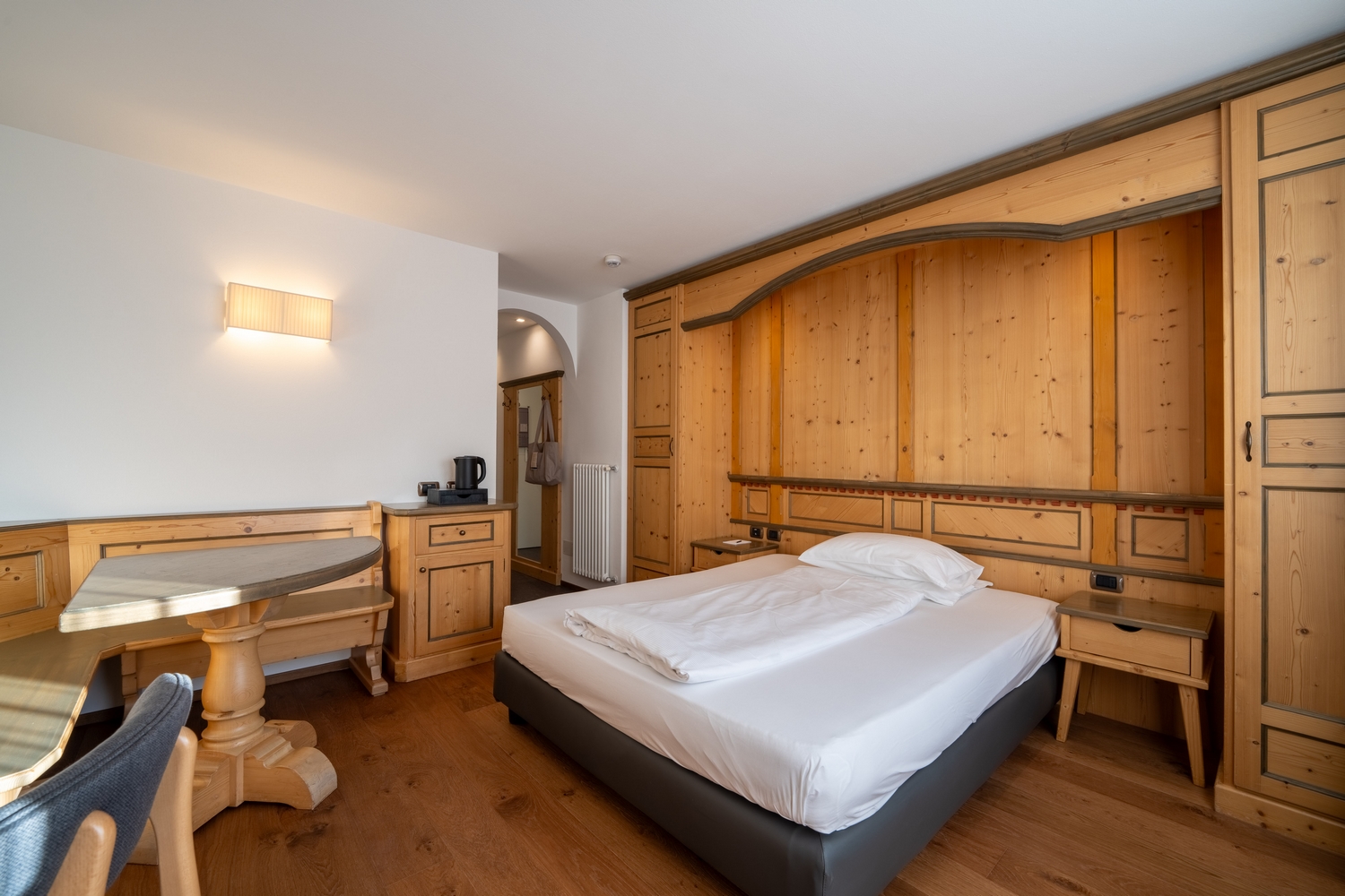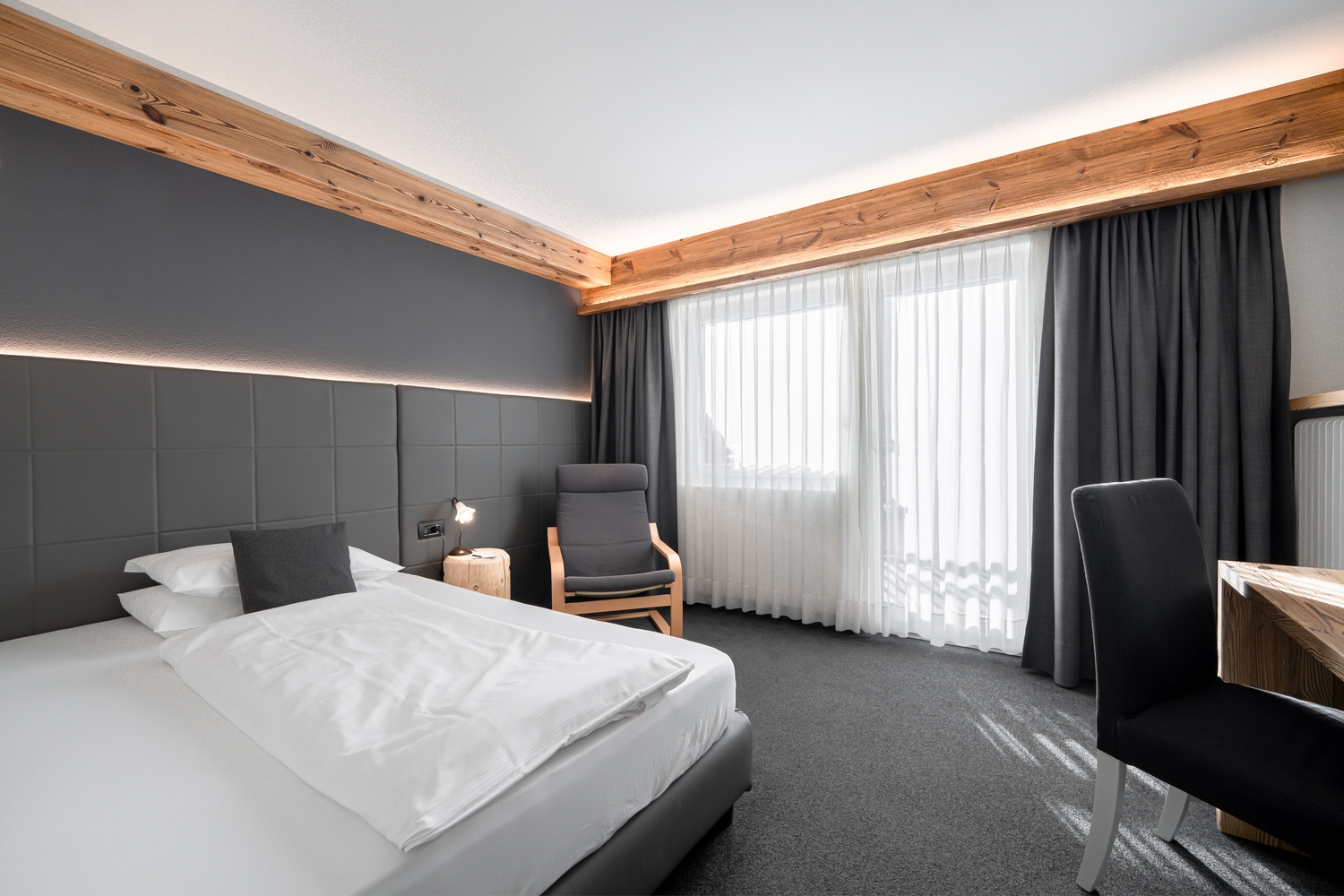 Einzelzimmer von 20 m² mit Balkon und Bett zu 1 1/2 Plätzen. Die Zimmer können in Größe und Ausstattung von den Abbildungen abweichen.